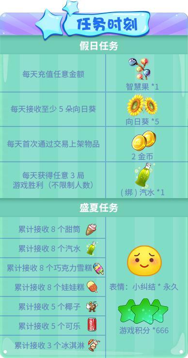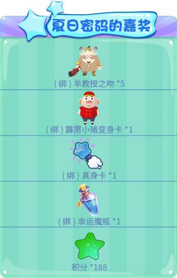 趁着幸福美妙的长长假日,让我们一起热闹起来吧!你只需要花一点点时间,就能学会我即将传授给你的“盛夏清凉魔法”——对!就是这样称呼它!抵御夏日炎炎,无需再全副武装!快来《推理学院》参加夏日欢乐颂精彩活动,清凉之行即刻启程! ![]() 活动时间:2019年7月5日00:00-7月14日23:59 活动一:任务时刻,清凉时刻 当美妙的盛夏时光里迎来多姿多彩的暑假,一定要记得感受无处不在的趣味!活动期间,完成“假日”和“盛夏”任务,即可领取对应奖励! 活动规则: 1.“假日”任务每天都会重置任务和奖励; 2.完成所有“盛夏”任务就可以获得所对应的全部奖励; 3.接收非绑定道具才能够完成“盛夏”任务! 活动奖励: ![]() 活动二: 限时秒杀,嗨购来袭 推理之都的超级商场开启促销活动啦!在活动期间,每天12:00可通过活动界面秒杀超划算的商品!千万别错过! 活动三:福利闹钟,惊喜不停 冰淇淋时间开始了!活动期间,每天三个时段保持在线就能领取不同的奖励! 活动奖励: ![]() 活动四:封印龙蛋,闪耀开启 传言中的神秘龙蛋,隐隐有了破壳而出的迹象!活动期间,所有玩家可以选择一枚龙蛋,分别是“红色”、“黄色”、“绿色”三色龙蛋,红色龙蛋有机会开出“第六封印”,黄色龙蛋有机会可开出“第七封印”,绿色龙蛋有机会可开出“第五封印”。 玩家可在活动中看到龙蛋的成长状况,当每只龙蛋的成长值达到一定条件后,就可以领取对应奖励啦!而当成长值满后,龙蛋就会孵化,您将随机获得一只宠物,有大几率是封印宠物哦!当孵化一个蛋后,可继续从三个蛋中选一个重新成长! 成长值获取方式:每消耗1金币(购买金砖、金元宝、投资、大咖和赠送不计)即可获得1成长值。 成长值额外嘉奖:在活动结束后,玩家每拥有一点成长值,《推理学院》即会为该玩家赠送1游戏积分,该赠送积分将不会加入到“每周/月积分增量排行榜”中。 龙蛋奖励:除封印宠物外,每颗龙蛋里面的宠物相同。 ![]() 成长值奖励: ![]() 活动五:超级夺宝,幸运青睐 产自蔚蓝之渊的神秘宝藏开卖啦!活动期间,参与超级夺宝,赢取惊喜好礼吧! 活动规则: 1.在活动期间内不限夺宝时间,直到成功夺宝其中一种商品后,该商品才会重新开启夺宝; 2.参与“超级夺宝”所花费的金币会增加VIP值; 3.“超级夺宝”游戏规则与“夺宝奇兵”一致,若有其他疑问请咨询《推理学院》官方客服 超级夺宝: ![]() 活动六:限时冲级,火力全开 摩拳擦掌,斗志昂扬!活动期间, “参与”活动,即可按照您的等级分配到不同“等级区”——太阳及以下;太阳;牌子;帽子;皇冠;白蝶;彩蝶;黑蝶;金蝶;金蝶以上。 在活动结束后,各个等级区积分增长最多的玩家,将成为10位获胜玩家之一,并获得“浪漫沙滩/热情海浪”*90天(按性别获取)以及全新宠物·憨笑猪*90天作为奖励! 活动规则:服装、宠物奖励均为非绑定物品,可进行交易和回收,不可续期。 活动奖励: ![]() 活动七:魔法翻牌 活动期间,魔法翻牌新增以下物品:鸡美头套*90天、迷糊眼镜、魅紫之羽/酷紫之影、奔驰、魔力音符*99、魔力音符*999、魔力音符*9999、奖状、香槟塔、惊喜福袋、祈福宝袋、许愿宝袋。 活动八:盛夏魔法,欢乐降临 推理之都再次迎来超超超超级有趣的暑假!我们邀请了来自精灵群岛几乎所有本领高强的魔法精灵,为《推理学院》施加多重强大的清凉魔法!在活动期间,推理之都将限时开启以下功能: 1.“激情向日葵”每日可接收向日葵的上限突破至99(200总上限保持不变)! 2.完成每日任务后获得的积分奖励增加50%! 3.每日首次结算“美颜”将享受5折优惠! 4.700分及以上玩家每天发送的首条小喇叭免费(需通过活动界面发送)! 5.来自2018和2019愚人节的限定美颜将回归推理之都! 活动九:推理时刻,考古谜题 嘿!瞧瞧是谁来了,推理之都的名侦探!我们等您多时了!我们的考古团队这次又传回来几条线索,但我们一直想不到可以用什么方法解开它的秘密,所以我不得不邀请您来助阵。 您可以通过《推理学院》“限时活动”界面发现三位队员带来的线索,当您破解所有线索之后,就可以在活动界面输入您的答案,如果答案正确,您就能够立即获得奖励。 活动规则:每个玩家每天最多验证20次密码,超出限制后需次日再试。 活动奖励: 1.在活动期间第一位解开并输入正确答案的玩家将可以立即获得“金砖”一份! 2.在活动期间,只要您成功解开并输入正确密码,即可获得以下奖励: ![]() 注:本公告最终解释权归《推理学院》运营团队所有 |