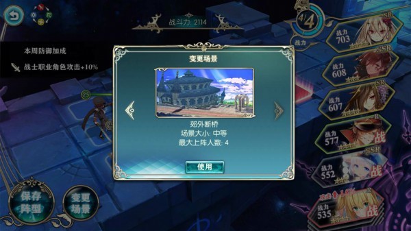 在《神无月》游戏的竞技场中,不仅仅要挑战对手,设置合理的防守阵容也可以获得奖励! 一、 如何进行防守 1、 点击竞技场中的“布阵”按钮,可以进入到设置防守阵容的场景。请合理的搭配角色以及调整角色站位。 ![]() 2、 调整完毕之后点击“保存阵型”按钮。 ![]() 3、 点击“更换场景”按钮,可以调整竞技场防守的场景,不同场景的地图大小不同,在战斗中会存在不同的策略。 ![]() 二、 获取防守奖励 1、 在竞技场中成功防御其他玩家的挑战时可以增加本周的防守胜场数,累积本周防守胜场数可以获得丰厚的奖励。 2、 防守胜场数每周一5:00清零,同时奖励重置。 ![]() |