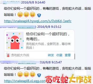 这样分享就算完成了,剩下的就是等待你的好友点击,即可获得金币奖励。 小编极力推荐: 如果你朋友不够多,每天获得金币还是很少的,加入贪吃蛇大作战官方QQ群,里面聚集了很多贪吃蛇高手。在这里不但能与其他玩家相互点击分享快速刷金币,还能与大神交流游戏心得,助你成为顶级高手。 更多有关《贪吃蛇大作战》的攻略、资讯、公告等相关内容信息,请关注360游戏大厅网《贪吃蛇大作战》专区。 |