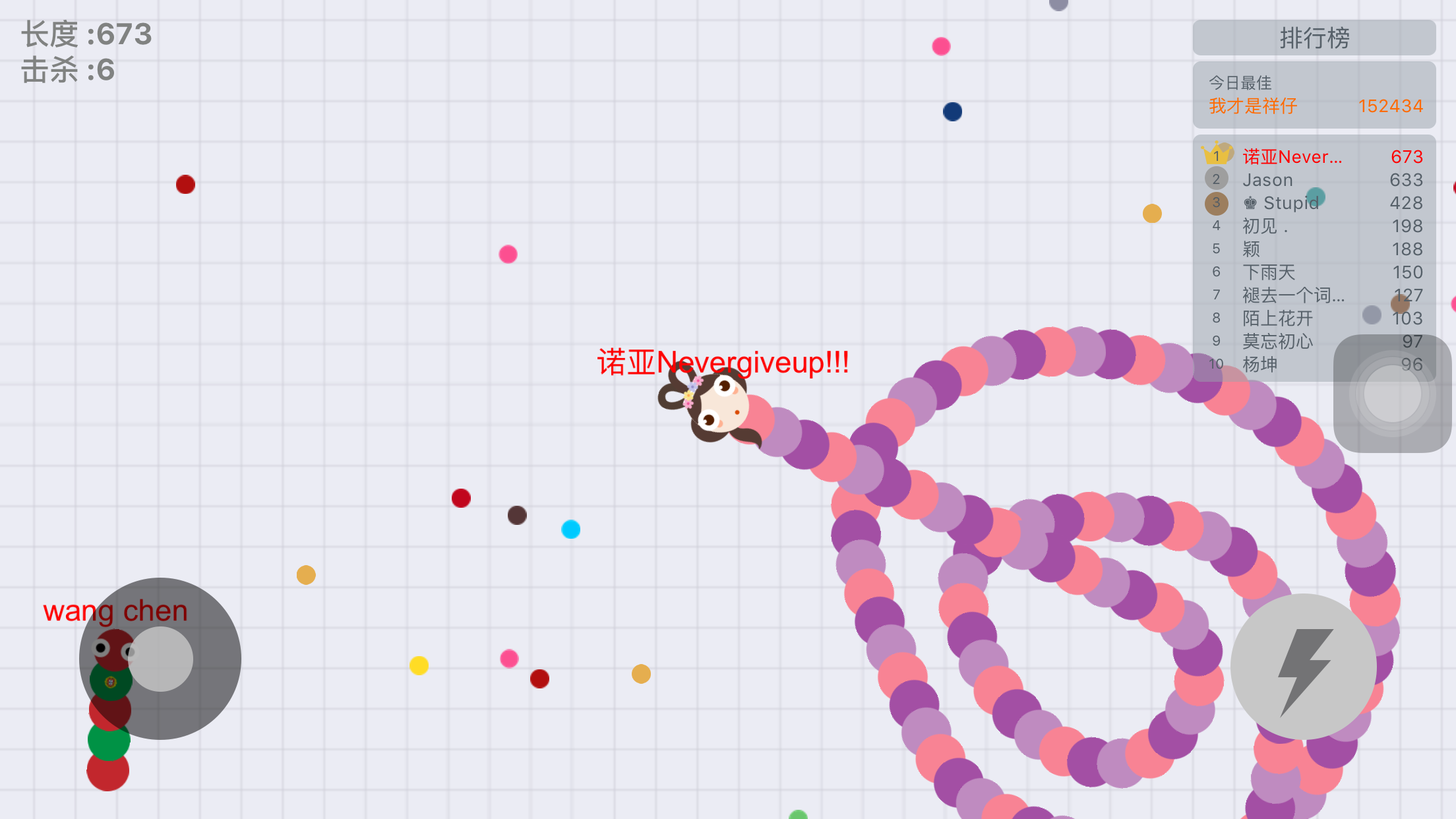 最近贪吃蛇大作战可真是火爆啊,小编的好多朋友都被这玩法操作简单,萌萌的小蛇给吸引了,不过虽然这款游戏操作简单,但是好是需要掌握一些技巧才能不被其他小蛇误伤哦,尤其是想要刷高分的小伙伴,掌握好这些技巧都是非常有必要的,那么刷高分有哪些技巧呢?下面小编将为大家详细介绍,不清楚的小伙伴一起来了解一下吧。 ![]() 贪吃蛇大作战刷高分技巧 1、跟边界会有0.5厘米左右的允许重叠的范围,而不会一碰上就马上死掉(好好利用这一点); 2、如果你用的皮肤跟敌人一样,而你们的长度又足够长的话,敌人很有可能以为你的身体是自己的身体而撞上去; 3、好的网络是成功之母,延迟会导致敌人反应迟钝,甚至一头撞上来; 4、当你的长度足够长(5000米以上),向地图中间走吧。你会发现有源源来断的小蛇自己撞上来; 5、加速是要扣长度的,不要随意加速; 6、如果你的长度在30以下,你是不能加速的哦(因为要扣长度嘛); 7、不同的光点给你增加的长度是不一样!具体来说就是尸体>光的大的>光的小的=暗的大的>暗的小的; 8、松开手指,你的蛇会一直保持最后的方向直线移动; 9、转弯转不过来?松开手指看看是不是摇杆太靠近屏幕边缘吧; 10、达到一定长度之后,蛇的移动速度会减慢,但这个节点比后,并不会每次吃光点都减慢; 今天的贪吃蛇大作战刷高分攻略, 刷分技巧详解就为大家介绍到这了,怎么样,大家都明白了吗?希望小伙伴们下次继续支持我们超好玩哦,小编会努力带来更多有趣的攻略的。祝大家游戏愉快,再见啦。 |