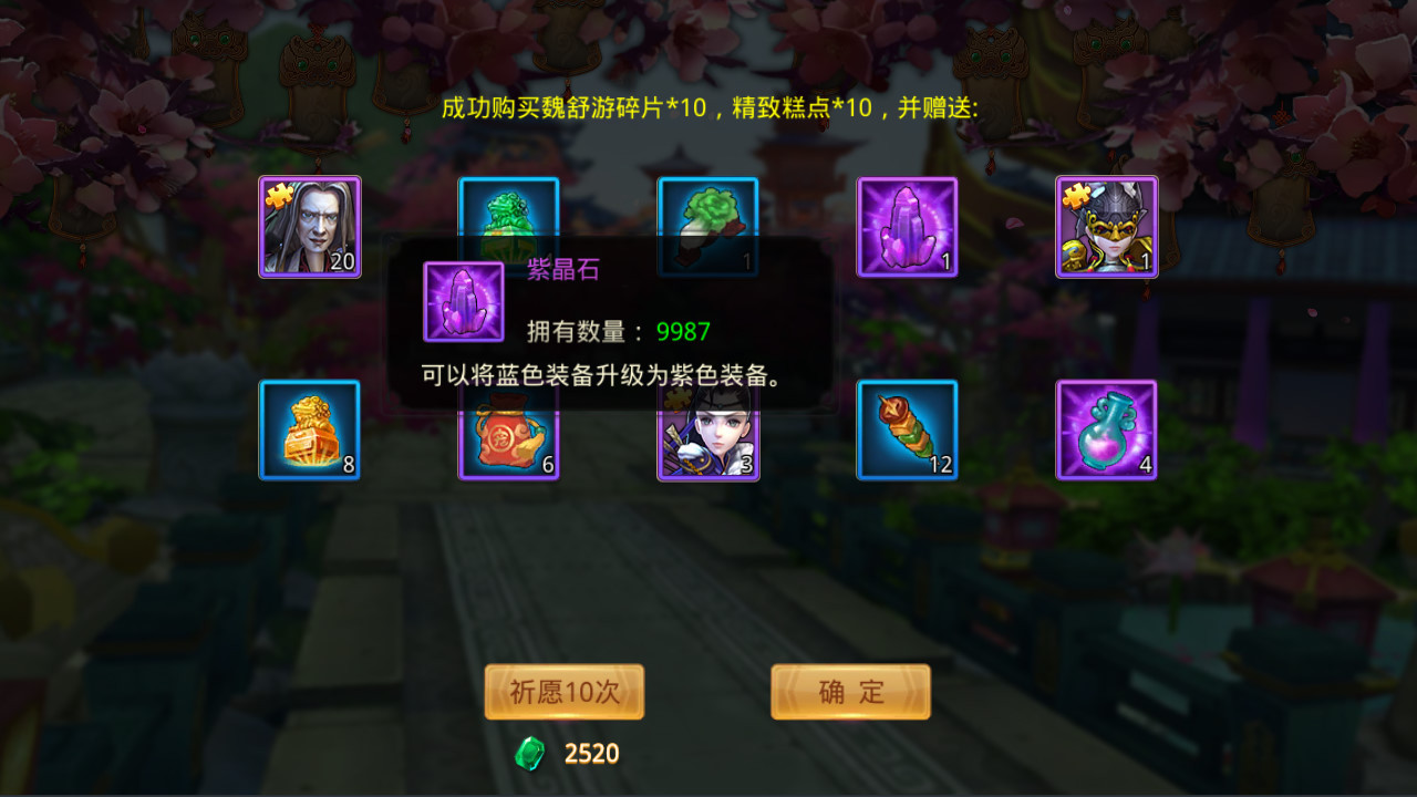 游戏中装备共分为5个品质等级,品质从低到高分别是:绿色—蓝色—紫色—橙色—红色,品质提升后每件装备对应的属性也会得到大幅度的提高: 武器:提升武将攻击力 护甲:提升武将防御力 护腕:提升武将生命值 鞋子:提升武将生命值 虎符:提升武将攻击力 兵书:提升武将生命值 ![]() 装备在升品的过程中需要消耗银币和晶石,升级到不同的品质需要对应颜色的晶石,晶石可以通过副本奖励、活动奖励、许愿等方式来获得。 ![]() 装备在升品后会改变品质颜色,大幅度的提升对应属性,提高武将的战力。