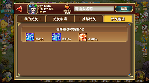 好友邀请:在好友邀请界面中,邀请指定的人数,可以获得礼包奖励哦!