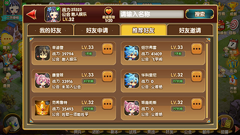 推荐好友:在推荐好友界面中,您会看到系统给您推荐的玩家。在众多玩家中,您可以挑选自己心仪的玩家加为好友,也可以全部都加为好友。俗话说:四海皆兄弟。如果是小编,一定会全部加为好友。