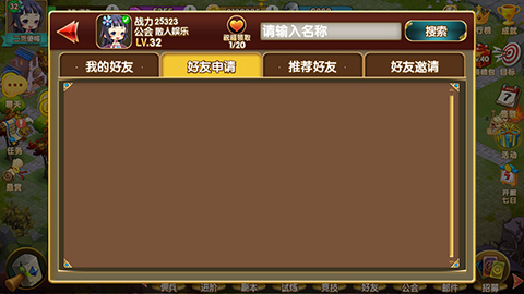 好友申请:在好友申请界面中,您会看到别人申请加您为好友的信息,您通过审核后,就能成为好友。当然啦,您也可以拒绝。不过,如上图所示,还没有人申请成为小编我的好友呢?如果您想成为我的好友,那就快进游戏加我吧!