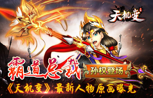 【孙权:土豪金加贵族红】 孙权,字仲谋,与父亲和兄长的野性和霸气不同,他的睿智深藏不露,更喜欢运用智谋为江东扩展版图。 在《天机变》中,他头戴金冠宝石,手持长枪,威武霸气,十足的霸道总裁范。在武将原画中,《天机变》的美术大胆运用土豪金和正红色,众所周知,这两种颜色在古代可是只有贵族皇族的专属颜色,充分显示了其出生江东孙氏集团的傲人家世。而手持长枪,脸色的桀骜表情,更是让人又爱又粉到心里去了哇。