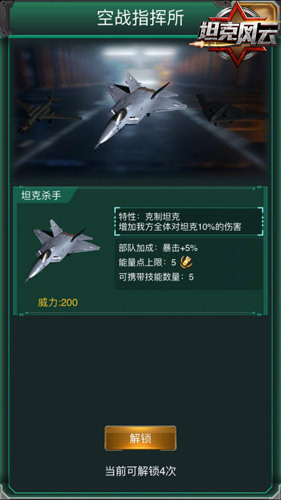 全球首款坦克题材SLG手游《坦克风云》空战系统震撼登场!本次更新战斗形式全面升级,空中部队首次加入作战,陆空结合,实现全方位立体打击,带来不一样的战斗体验。在指挥所中升级战机并搭配全新的战机技能,争夺制空权,与地面部队配合,开辟全新战场。《坦克风云》将给你最真实的战争体验!![]() 作为《坦克风云》的全新战斗部队,空军在地域范围就有很大的优势。它具备了陆地兵种所缺失的高攻击范围,并且更加灵活。空军在游戏中对现有四种兵种(坦克、歼击车、火炮、火箭车)推出不同的克制机型,将增加本方全体伤害,甚至带来额外属性攻击。 ![]() 指挥官在等级达到50级后,即可开启空战系统。拥有了战机后,就可以在部队中进行配置了。《坦克风云》特建立空战指挥所建筑,指引指挥官在其中解锁及培养空中部队。每种战机可装配一种主动技能,四种被动技能,技能共具有五个品阶,其中指定品阶可以进行升级。 ![]() 《坦克风云》战机技能除常规升级外,可以对不需要的技能进行分解,获得技能专精。技能专精是升级时的必要消耗道具。而技能融合则是可以消耗6件同阶技能随机获得1件高1阶技能。各位指挥官在升级的同时,也不要忘记利用暂时无用的技能变废为宝。 ![]() 在部队部署中,战机作为《坦克风云》的第七个作战单位,将在战斗中给敌人来一场空中偷袭。指挥官可根据敌方的不同兵种来选择不同的战机克星,为战斗增加更大的胜算。在战斗中,不同于坦克,空中部队将在战斗时突然出现,直接发起攻击,展现一场酷炫的战斗。 ![]() ![]() 《坦克风云》是一款由雷尚(北京)科技有限公司开发的全球首款坦克题材SLG手游; 这里有辽阔的战场,能够容纳成千上万只装甲集团军在这里纵横拼杀;这里汇聚了古今中外战场上各式威名赫赫的主战坦克,能够让您组建一支前所未有的强大陆战之师;这里集中了最具现代化科学技术与高效装甲部队相结合,能够让您体验到现代化科技战争的无穷魅力;而这一切,只要您动动手指,即可体验“弹指间,樯橹灰飞烟灭”的快感! |