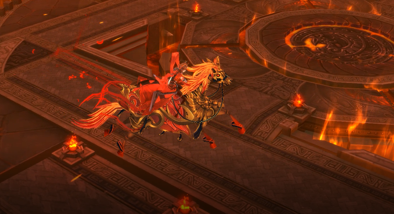新增坐骑——骷髅战马,全身为精干的枯骨覆盖火焰般飘逸潇洒的毛发,动静之间尽显骁勇之气!在火焰中穿行却未伤分毫,铜墙铁壁之躯想必能为侠士的江湖制霸之路锦上添花;全身金甲覆盖缀以红色装饰,更如浴火重生的战马一般战无不胜。