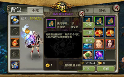 【暴富】打图挖宝 正义感爆棚却无处宣泄怎么办?全新的打图挖宝为你创造条件。每天10次机会,领取“惩奸除恶”任务的玩家可到指定场景击杀恶人获得藏宝碎片,收集足够的碎片使用乾坤袋合成藏宝图,即可组队去藏宝地点打怪得五行石、升星丹等奖励!
