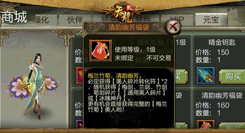 梅花,兰花,竹子,菊花。被人称为“花中四君子” 品质也分别是:傲、幽、坚、淡,正是根源于对这种审美人格境界的神往,而代表四君子的这四位美人也美得各有千秋,但是共同特点是自强不息,清华其外,澹泊其中,不作媚世之态。此等清新傲骨的四位美人能够拥有真是前世修来的福分,现在只要打开元宝商城点击【清韵幽芳福袋】能马上得到的四位美女姐姐,小编已经准备怒刷福袋赶紧集齐梅兰竹菊四美人啦!