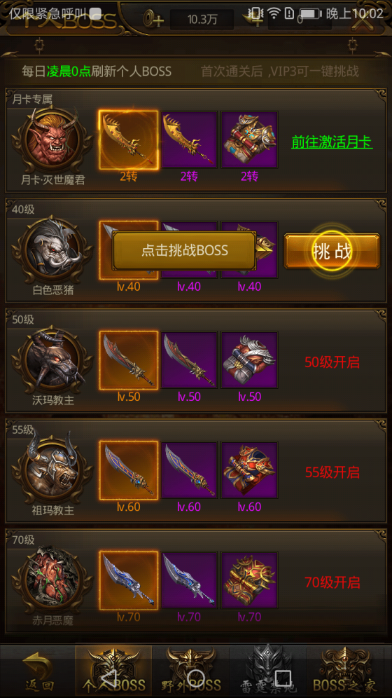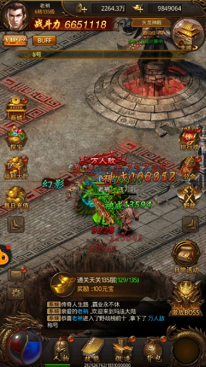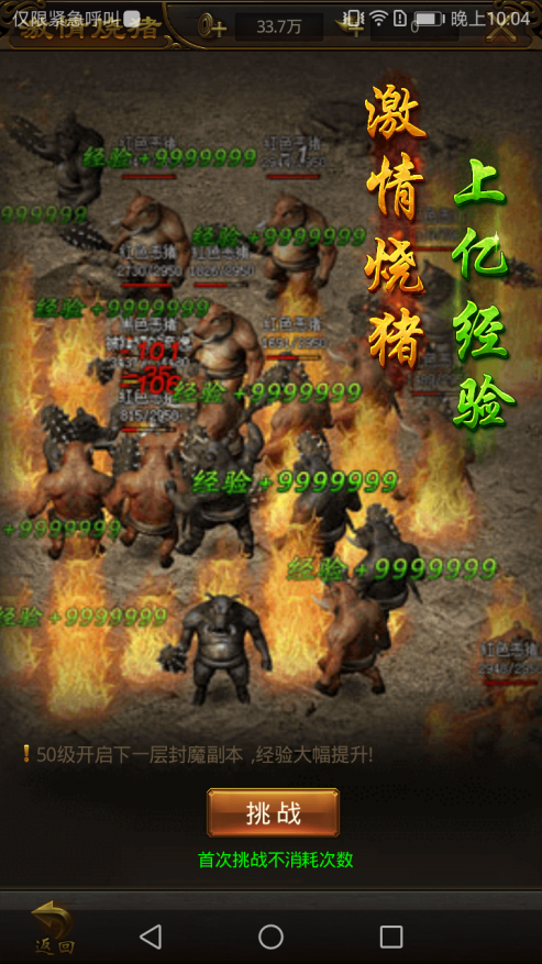 【游戏背景:勇士守卫家园的热血剧情】 《屠龙破晓》的故事背景定位在神秘的玛法大陆,人类本饱受魔物的欺压。但是某天神秘种族降临玛法大陆,他们拥有强大的战斗力,教会了人类各种战斗技能,击退了魔物。人类开始了漫长的而悠远的领土扩张和文明建立,建立比奇王国。 当神秘种族逐渐隐退后,一次大爆炸,文明逐渐消失。藏在洞窟里的怪物,似乎知晓了人类文明势力的衰落,开始蠢蠢欲动,意欲卷土重来。怪物纷纷袭击比奇王国的城池,人类再次遭到前所未有的危机...... 所幸的是,文明中仍有血脉继承了战斗能力,他们分别是战士、道士、法师。剩下的这些勇士们,竭力铲除魔物,守卫比奇王国。这是一场未知结局的冒险,而勇士们将会一往无前! 【游戏玩法:丰富多样的战斗系统】 《屠龙破晓》游戏以战斗为主题,当然其玩法系统也是丰富多样的。不同的战斗对象,大大增加了游戏的可玩性。只有你想不到的怪物,没有你打不到的怪物! 首先在野外地图可以挂机打怪,赚取丰厚经验和碎片装备,解放双手,上班也可以挂机升级。其次点击野战系统,你能够挑战地图附近战力相当的玩家,PVE与PVP紧密结合,无缝切换。 不得不提就是豪迈的激情烧猪系统。只要进入激情烧猪副本,如潮水般的野猪怪物大军就会向你涌来,击杀就能获得海量经验,是新手阶段快速升级的必选完成任务。如果你是VIP,还能使用末日审判这个强大技能。满天火光陨石坠向野猪怪,这种感觉怎一个爽字了得! 激战BOSS系统是指每个相应等级都会有个人BOSS可挑战,定时定点BOSS刷新也可挑战。VIP还可以挑战专属BOSS,获取专属福利。BOSS玩法采用“共同战斗,抢夺归属”的模式,玩家除了拼实力战力,还得拼时机策略。因此,《屠龙破晓》也讲究玩法,并非只是无意义的氪金比拼! |
