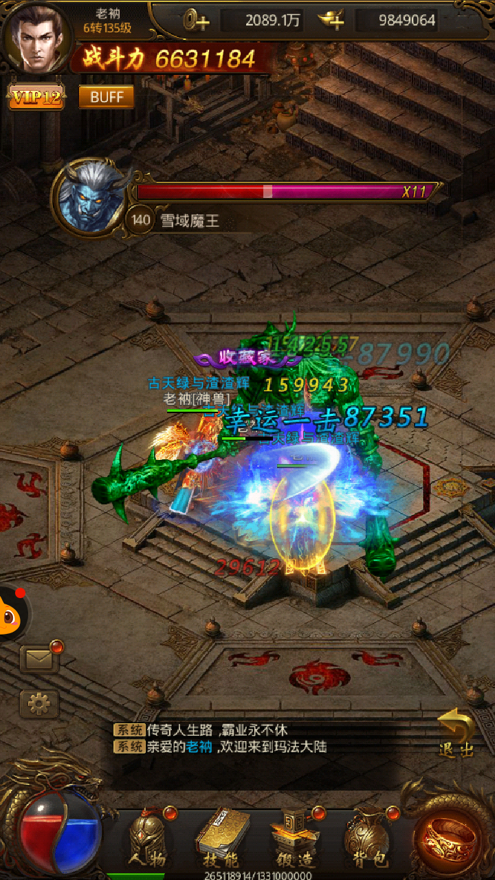【游戏画面:竖屏展现远古魔幻传说】 一进入游戏,左下角依然是那个熟悉的红蓝太极图,表示血量与魔力。UI界面上方是帅气的角色头像,人物、装备、技能指示界面清晰。作为新手玩家刚进入游戏,画面整体给我们的感觉就是走东方的魔幻风路线,画风复古而精致。