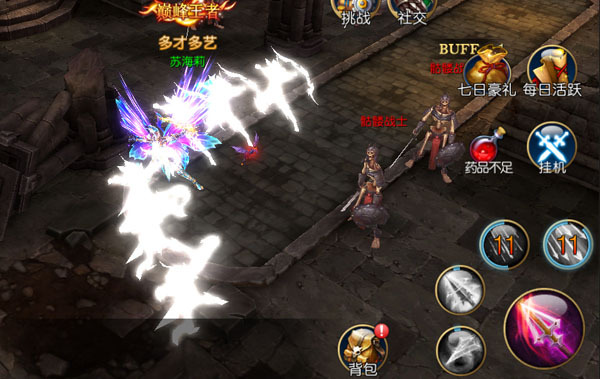 一提到技能特效、华丽、炫酷,让人不禁想到的是魔法师的技能,没错!《天使荣耀》里魔法师的技能特效绝对挑战你视觉体验巅峰,但是剑士和弓箭手的技能也能震撼你的心灵,这里给大家提供一些参考,但截图没有屏震效果,还请读者自己晃动显示器已达最佳效果! 剑士-龙牙刺 ![]() 剑士-疾风刺 ![]() 剑士-毁灭之跃 ![]() 弓箭手-扫射 ![]() 弓箭手-强力击 ![]() 弓箭手-幻影箭 ![]() 魔法师-暴风雪 ![]() ![]() ![]() 看到这里有的同学可能被吓到了,这效果我这小霸王手机肯定受不了啊,没有关系!人性化的设置会根据同学手机配置自动推荐画面档次,如果你特效已经最低了还是舍不得换掉这用了好多年的手机~~同样也没有关系,把该屏蔽的都屏蔽吧! ![]() |