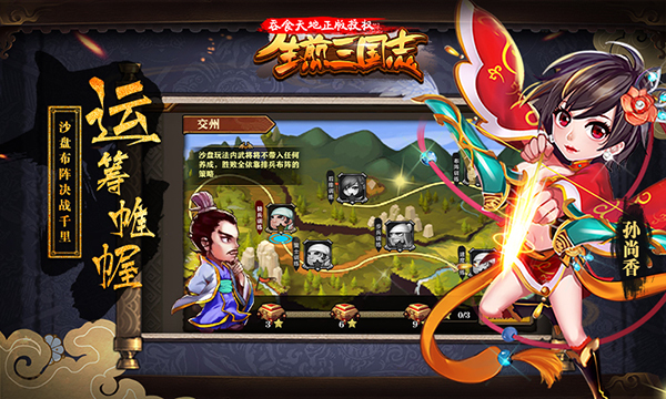 吞食天地正版授权《生煎三国志》将于2017年8月21日10点删档测试燃情开启!还原经典,再现热血,激情燃起,约战今朝! 在此次删档测试中,新增神兵系统,神兵的养成激活武将武器的光效并增可加武将属性和技能效果;世界聊天与军团聊天系统;体力补领功能;增加改名功能,首次免费;优化界面与部分系统等,三国再临,梦回东汉,成王败寇,由你决定! ![]() 【 武将养成 -- 三国名将尽收麾下 】 睿智如诸葛,忠义如关羽,最是潇洒小周郎,气团山河大曹操。经典三国武将再临战场,侠骨豪情,彰显英勇战力!武将的性格分为智、勇、仁、义、信五类,同性格武将培养会获得更高的属性加成;武将可通过碎片完成升星蜕变;统领兵种养成实现武将进阶,升官晋爵,称霸三国! ![]() 【 排兵布阵 -- 天命羁绊策略对决 】 武将之间拥有天命羁绊,合理搭配提升主公阵营战斗力。武将分四个兵种,水雷火光暗五行,速度与五行布阵乃制胜法宝。不仅强调培养的过程,也强调侧重排兵布阵的体验,让你第一时间领略多武将战斗的乐趣。 ![]() 【 封疆守土 -- 问鼎天下勇夺江山 】 世界地图,不断征伐,快意恩仇,强将对垒,谁将尽享丰厚奖励?在城池林立的世界地图上攻城略地,通过不断征伐掠得资源,争当世界霸主! ![]() 【 运筹帷幄 -- 沙盘布阵决战千里】 独创烧脑一血玩法!胜败全靠运筹帷幄,排兵布阵,策士武将合理搭配!通关烧脑关卡赢取高智商IQ200头像,挑战智商上限。 ![]() 【 南征北战 — 调兵遣将智取千军 】 决战竞技之巅!勇武场将淋漓彰显主公智慧,争当最强王者,英雄与声望尽收囊中。经典三国剧情神还原,重返经典战场,逐鹿中原,谁与争锋! ![]() |