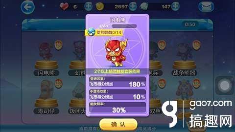 闪电熊:2个以上精灵触发套装效果 登场效果:飞币得分增加180% 不登场效果:飞币得分增加10% 触发概率:30% 从属性上看闪电熊的称呼和技能效果并没有什么联系,并不是速度型精灵,主要是增加飞币加成,这种属性一般比较好搭配,属于白搭型的一个新精灵,至于小伙伴们好奇闪电熊跑分效果,这个要等后续测试后才知道哦。 |