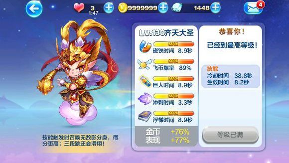 猴子可以在搭配任何坐骑都保持1:3500左右的表现分,哪怕不带坐骑也一样!这一点酷跑界没有几个角色可以做到。