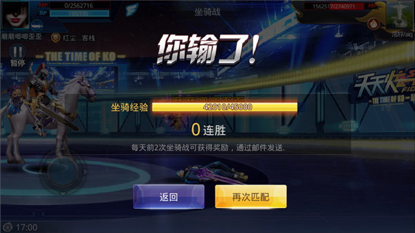 只有我们点击开始匹配之后,系统才会为我们匹配对手,在此之前,我们有必要先来看一下坐骑战的游戏规则。先说说坐骑战的奖励,从上图中我们也可以看到,坐骑战每天能进行9次战斗,但是系统只会发放前两次的决斗奖励,无论输赢都有。每天得到两次奖励之后,再进行游戏就不会有奖励了,如果只为奖励的话,每天只需进行两次游戏就可以了。具体的游戏规则我们一步一步来看,首先是匹配对手。