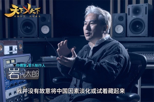 岩代太郎为《天下X天下》亲自操刀、定制的数只乐曲,出色体现出了“世界性的国风色彩”。雄浑而富有流动感的弦乐,舒缓而悠远绵长的笛音,沉重连续的战鼓……他毫不吝啬地运用中国风元素,不管哪个国家的人听了或许都会脱口而出:“这是属于中国的感觉!”,同时也使得音乐本身充满了国际化的张力。