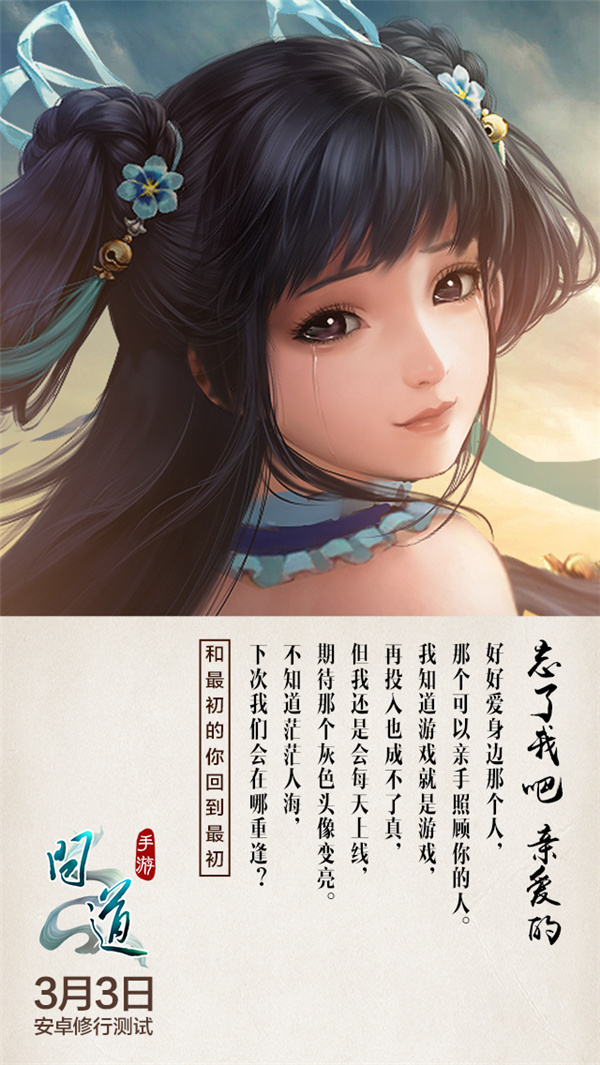 【忘了我吧亲爱的】记得那年我们在风月谷面对月老许下山盟海誓,记得当年你长剑挥舞,惊艳四方,记得当年你狮吼道北,我乖乖投降。一晃多年,看着你不再亮起的头像,望着我枕边空落,也许早有一人伴你左右。忘了我吧,但别忘3月3,期望与你重逢《问道》手游。