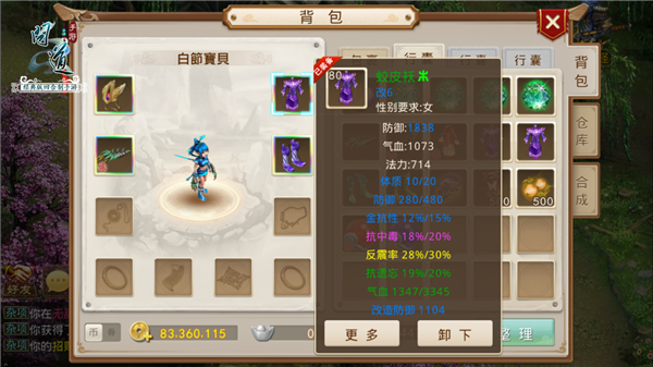 图3《问道》手游装备强法伤害 【五行套装】 除上述所说,五行套装也是《问道》手游中不得不提的一大五行特色,《问道》手游会在70级以后开启五行套装功能,套装由武器、帽子、衣服、鞋子组成,当玩家集满部件后,所有的套装属性会被激活。同时,角色会有新的套装效果。五行套装在能力及属性方面都远远超越了现有的普通装备,这也是道友们为之着迷的原因。
