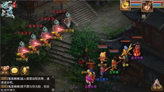 图2 《问道》手游碧玉童子为队友加血战斗画面 守护的成长方式主要是通过历练和培养。首先是历练,童子可以历练两次,而长老只能历练一次,神灵因为太过强大就不需要历练啦。童子完成历练后,品质提升一级,如品质为童子的守护完成一次历练后品质可提升为长老,名称颜色由蓝色变为粉色,但形象不会发生变化。而长老在完成历练后,品质将提升为神灵,资质由优良变成卓越。历练会使得守护气血、物伤、法伤、速度和防御都有所提高。守护历练得完成相对应的历练任务,道友们可要努力完成啦!