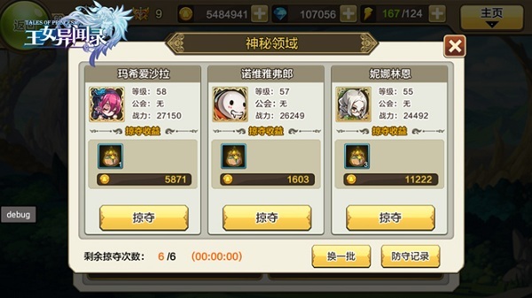 如果你选择了后者...咳,那你将面对来自其他勇士的掠夺,当然你也可以主动出击进行搜刮。进入搜索掠夺的选项,就意味着进入了一个神秘的领域。这里的勇士都已经搜刮到了相当丰厚的财宝,你可以根据面板上的基础信息判断对手的实力,如果你的实力明显比对面强,嘿嘿。拔剑吧,骚年!谁赢了,财宝归谁!规则就是这么简单。 ![]() 知道了这些探索巨龙宝藏的套路,接下来跟王女小姐姐们一起冒险,获得更多财宝吧! |