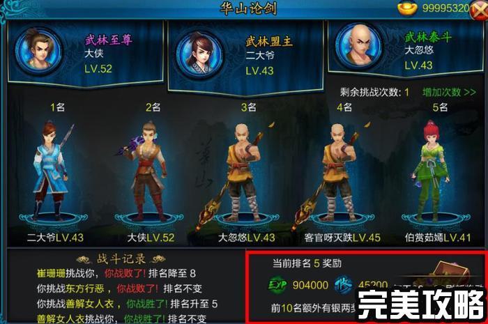 (2)华山论剑的战斗结束也会有经验,修为奖励