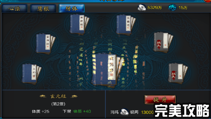 当玩家点满一个内功的所有亮点后,会自动开启下一个内功,我们总共收集了12套内功,介是玩家耳熟能详的内功心法,为玩家提供充分的属性养成空间。