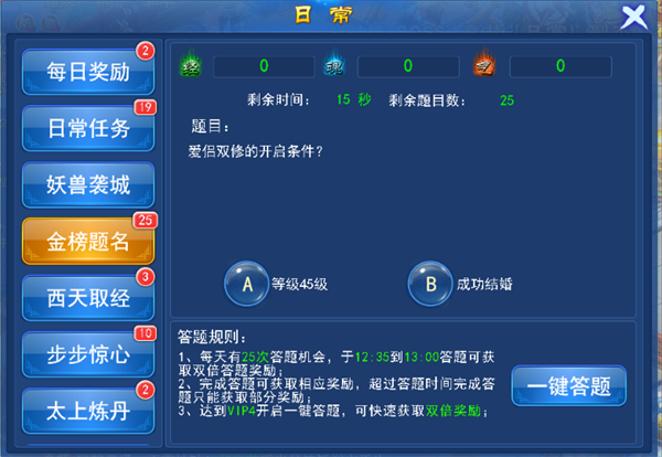 金榜题名:书中自有黄金屋!每天有一定数量的答题机会,完成答题即可获取相应奖励。
