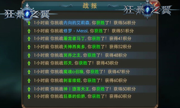 《狂暴之翼》跨服赛战报 积分获取规则 预选赛第一天实行随机匹配模式,有点拼运气的成分,第二天开始则按照段位匹配,完全用实力说话。预选赛共6天,每天有10次挑战机会,64强进入到四界争霸赛。 挑战别人胜利自己可随机获得40-60积分,挑战别人失败自己不扣分。如果被别人挑战,自己失败了,会随机减20-40积分。