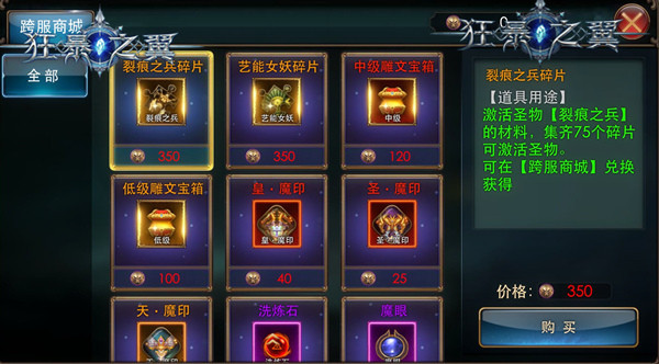 《狂暴之翼》跨服商城 为了最后的界王巅峰战,为了获得专属称号和大奖,勇士们为战而狂!跨服赛酣战淋漓,让我们一起见证万界之王的诞生吧!