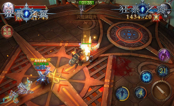 跨服争霸,万界之王!《狂暴之翼》首届跨服争霸赛正在如火如荼的进行,各大跨服区组的玩家们都在竭尽全力登顶积分榜。来看下前线战报吧~ PK十连胜 捷报频频 作为PK控的《狂暴之翼》玩家们,还在抱怨无敌的寂寞吗?你们想要称霸别的区服的野心终于可以付诸实际啦!跨服争霸赛已拉开序幕,和其它服的大神们一决高下吧! 现阶段是积分预选赛,很多勇士都达成了每日的PK十连胜,成功登顶积分榜前排。跨服赛分组进行,例如1服到14服分为跨服1组,则这些服的玩家都有机会在PK场上相见。