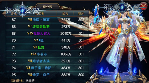 《狂暴之翼》跨服赛积分榜