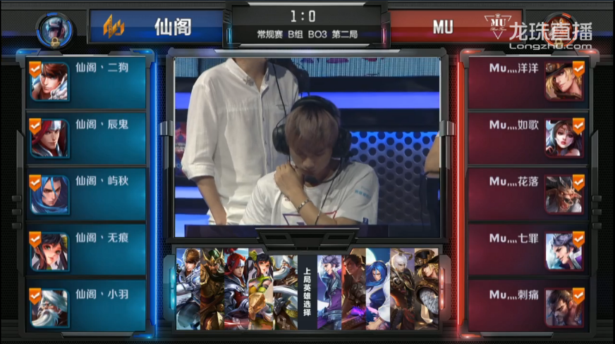 第二回合BAN/PICK BAN:关羽、露娜 PICK: AS仙阁:赵云、韩信、橘右京、孙尚香、姜子牙 MU:马可波罗、貂蝉、牛魔、刘邦、宫本武藏