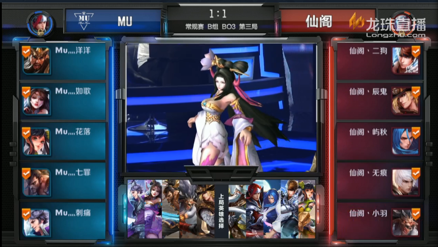 第三回合BAN/PICK: BAN:韩信、露娜 PICK: AS仙阁:赵云、马可波罗、橘右京、嬴政、牛魔 MU:关羽、貂蝉、孙尚香、宫本武藏、刘邦