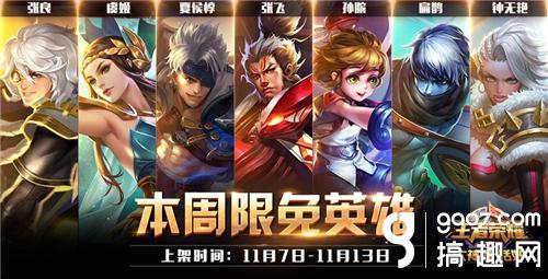王者荣耀11月7日-11月13日限免英雄轮换公告。本周周免英雄是张良,夏侯惇,孙膑,虞姬,张飞,扁鹊和钟无艳,让我们一起来看看吧。 新一轮的限免英雄又出炉了,召唤师可以尽情地选择自己喜欢的英雄进行战斗啦。事不宜迟,本周周免英雄有:张良,夏侯惇,孙膑,虞姬,张飞,扁鹊,钟无艳。小编根据各位英雄的类型,在不同模式下来匹配出一些有效实用的组合阵容!