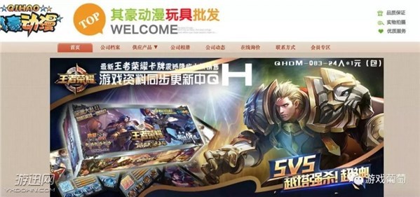 第一种卡牌并未注明公司名称或生产方的所在,但第二种卡牌的包装纸上写着“其豪动漫”四个字。葡萄君尝试查找了这家公司的官网,网站直接通向了这家公司在阿里巴巴1688批发网上的销售页面,这是一家经销批发纸制品卡片玩具的公司。
