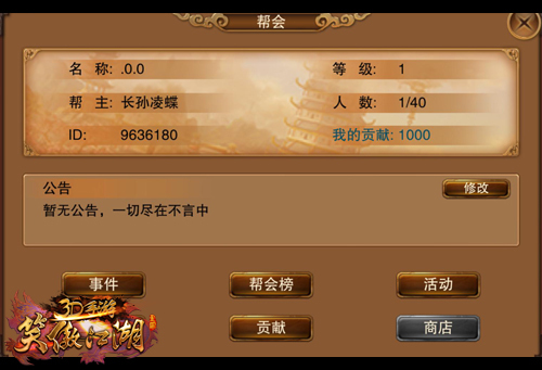 【拉帮结派群侠聚义 广交好友共闯江湖】 江湖上宗派林立,岂能独步天下?选择一个适合自己的帮会将帮助你的江湖之旅走得更加顺畅。《笑傲江湖3D手游》不仅可以自己建里帮派成为一帮之主,也能加入帮会,参与帮会活动,获得更多丰厚的奖励。