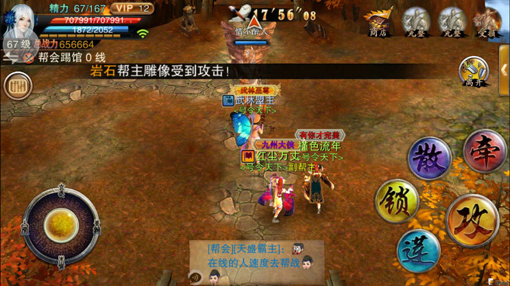 帮派活动中的帮派攻防战出来也有一段时间了,不过因为各种问题热度很低--#好吧,既然没有人讲,我就来给大家做个简单的介绍吧,本文以问答加图文的方式进行叙述。 帮战时间 1.帮会攻防战一周有几次? 规则里写了,每周有2次机会,分别在周三和周日晚上9点开始。 2.帮会攻防战怎么打? 每周1、2和5、6可以宣战任一帮派,宣战成功即可于上条时间点击帮会-活动-进攻/防守进入帮战地图。 3.帮会攻防战同时可以和几个帮派一起打? 防守方固定为一个被宣战帮,进攻方可以同时为3个帮派,3个帮派依据帮会声望进行筛选,高的3个留下,同时宣战的低声望帮会淘汰。 具体流程 具体流程如何? 帮战商店,帮会成员可以在商店中随时购买属性加成的状态,以便于更好的杀敌。 进入点,进去后要等时间倒计时好了才能开打,进攻防守最多各15人,其他人就外面排队吧。