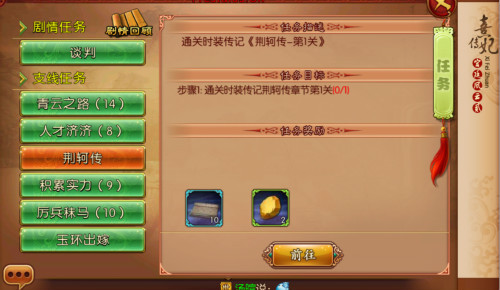 四、主线任务 新增男、女主线任务,这次又有故事可以看了。作为一款由高人气小说改编的宫廷手游,必然少不了剧情,这下麻麻再也不用为我的小说操心了。你可以一边玩游戏,一边看小说,想怎么玩就怎么玩,想怎么看就怎么看,真是“寓教于乐”,小说游戏两不误。此次更新,分别增加了男性主线任务和女性主线任务,主线任务之下还有支线任务,让你玩的、看的根本停不下来。