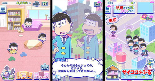 本作是一款改编自TV动画《阿松先生》的休闲游戏,玩家在游戏中将会操控松野家六子在东京进行冒险,通过捡钱来成为亿万富翁。游戏通过类似大富翁的双六式玩法来进行,玩家可以在游戏中收集各种各样的人气角色,并用赚到的钱来购买家具装饰自己的房间。