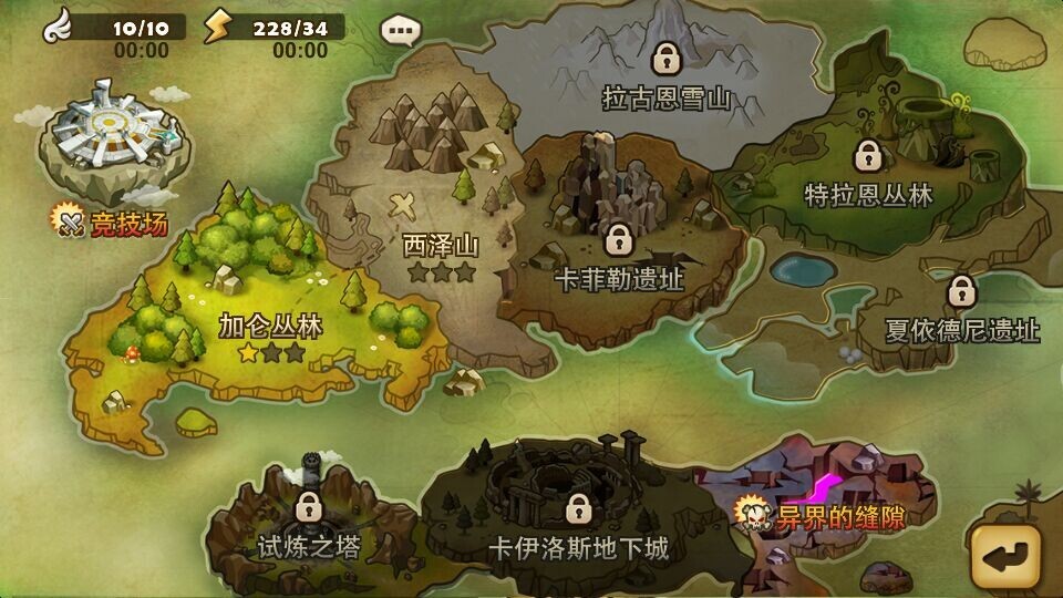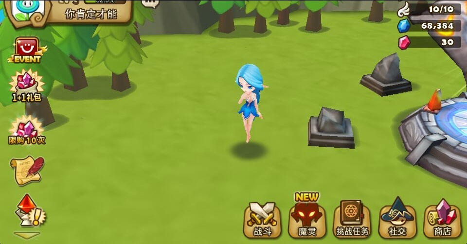 在游戏开始时,每位玩家拥有自己的天空之岛,可以在上面经营自己的建筑。岛屿所有游戏功能的入口的,玩家可以在这里进行魔灵召唤、技能强化、怪兽进化等等。你所有收集的人物以及魔灵也会在浮空岛展现出来。游戏战斗之后,再看看他们在岛屿上互动,还是颇有意思的。