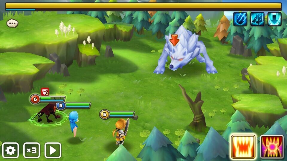 游戏的战斗模式,每只魔灵拥有其特殊的技能和战斗位置。魔灵分为风、火、水、光、暗五种属性,属性之间互为相克。它们不但有坦克、输出、治疗等位置,在战斗中还可以指向性对地方魔灵进行打击。所以,玩家在战斗之前,就需要先了解敌我双方的魔灵属性和技能之间的克制关系再对魔灵进行排兵布阵,这样才能最大程度的发挥魔灵的战斗力。这些丰富的战斗设定。让我想起了曾经经典的回合对战游戏《口袋妖怪》,可选技能、技能指向、属性相克,这些无疑都增加了游戏的策略性。