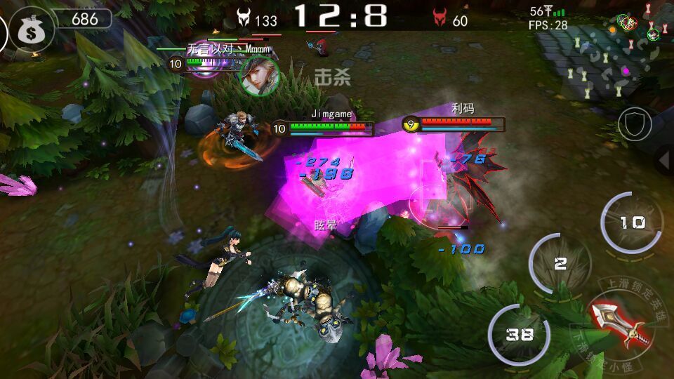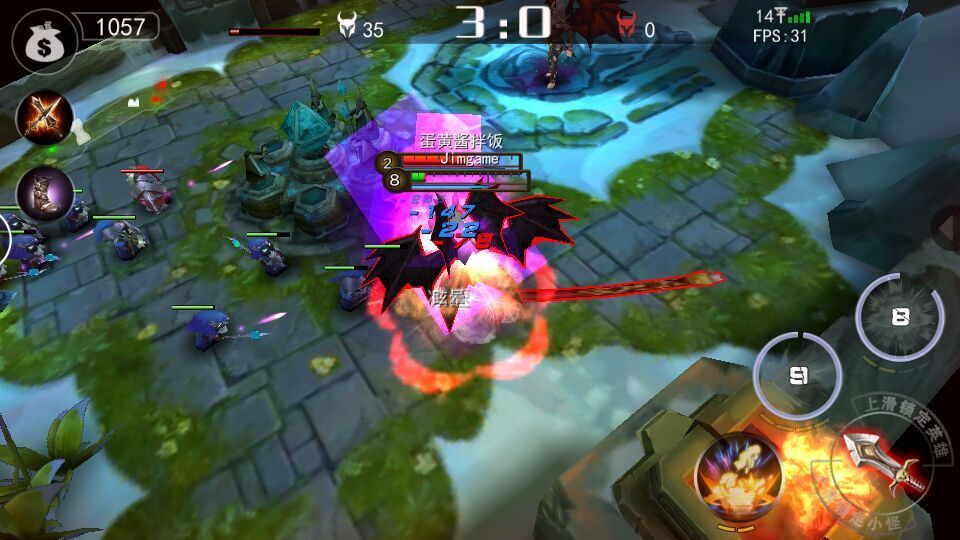 上手本作,最大的爽快感觉可能就要源于操作了。游戏采用了一个单独的攻击按钮,上滑切换目标英雄,下滑可以切换小兵。看着虽不起眼的小改动,却大大的是操作便捷了玩家在战斗时的操作。补兵不用满屏戳按,而是在小片区域操作即可完成。技能也可以进行自由释放,如果屠夫的钩子和寒冰射手的巨箭,增加了游戏的随机性,使乐趣更加丰富。