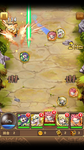 本游戏采用Cocos2d-x引擎,在攻击时技能特效华丽,碰撞和运动时动作流畅、自然。每一回合出击的角色通过倒计时的形式出现在屏幕中,清楚明了。