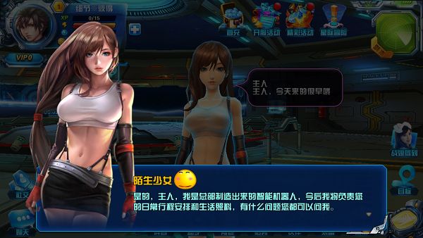 游戏开始是通过第一人称视觉开启游戏,还是十分具有代入感的,然后通过剧情引导,主角男被一个来自异度空间的漂亮美眉给绑架了,哦,不对,是被拉去强制征兵了,不过队长也是一个呆萌呆萌的美少女,艳福不浅哟!在队长宣布一系列事情后,终于来到期待已久的部分,主角被包办婚姻了,强制分配了一个美丽的小助手,而且是终生制小奴,据说这个小女仆是根据“小孽”真人定制的,小孽是不是就这么被我调戏了呢?小编邪恶的女仆养成计划终于要实现了吗?接下来都是由小助手来引导新手操作的,一边玩游戏,一边进行女仆养成计划,人生终于攀上了一个巅峰!而且每次战斗胜利后,小助手都会带着崇拜仰慕的眼光看着,小编的自尊心可是获得了大大的满足。