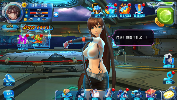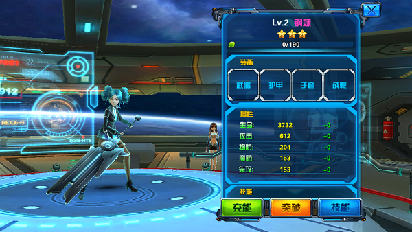 游戏画面采用的是3D立体设计配合整体的科幻风格,可谓是如虎添翼的感觉,然后再说说游戏里边的人物设计吧,游戏人物贴画比以往的3D科幻风游戏要细腻了不少,尤其是小女仆的人物设计,“胸”器可真是大,来进行女仆养成计划的动力真是越来越大了,不过,在游戏战斗中,人物就略显粗糙,这可能是手游的通病,本质上还是比不上端游那么细腻,毕竟端游动不动十几个G 的。最后说说游戏环境设计,背景仿佛是在一艘太空船上,显得有些单调!