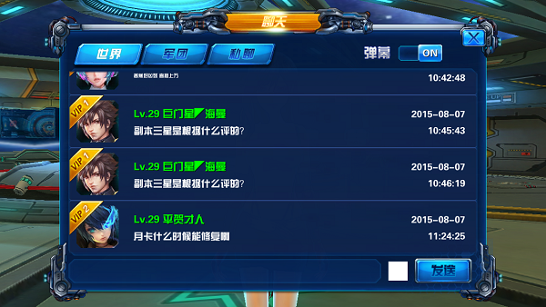 游戏交互系统相对而言还是比较人性化的,分为世界、军团、私聊3个频道,既不显得复杂也具备保密性,甚至还有开发出了现时代比较流行的弹幕系统。