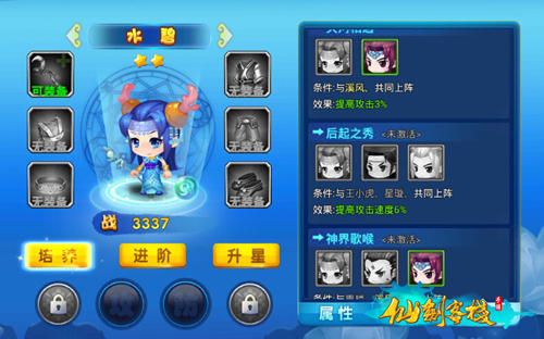 作为天师,属性方面可选择重点培养攻击。在角色定位上,水碧与溪风输出兼Debuff辅助截然相反,她的技能以提升己方防御能力为主。所谓在阵容搭配上,如果前期缺少强力肉盾时可以选择前排3名近战(3豪侠菜刀队)并带上水碧走主动提升防御力的路线。此外水碧拥有较多的机缘组合,大家也可在这一点上灵活利用,总的来说水碧除了有提升防御的辅助能力外,在阵容搭配上也有较强的泛用性。