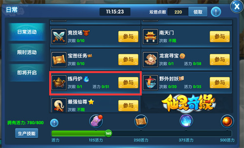 而在《仙灵奇缘》中,炼丹炉则设置得很亲民,大家都可以用。只要到了38级,游戏自动开放给大家,到时候,各位玩家想炼什么就炼什么,怎么炼就怎么炼。为了大家能有个方向,接下来就让小编我来为大家介绍一下炼丹炉的玩法吧。 首先玩家点开左上方的日常按钮,选择炼丹炉任务即可玩到炼丹炉了。既然是炼丹炉,那么它的作用也当然是炼丹啦。但是大家都知道,无论是炼什么,原材料是必须的。所以,要完成炼丹炉的任务,玩家需要找齐所有原材料。