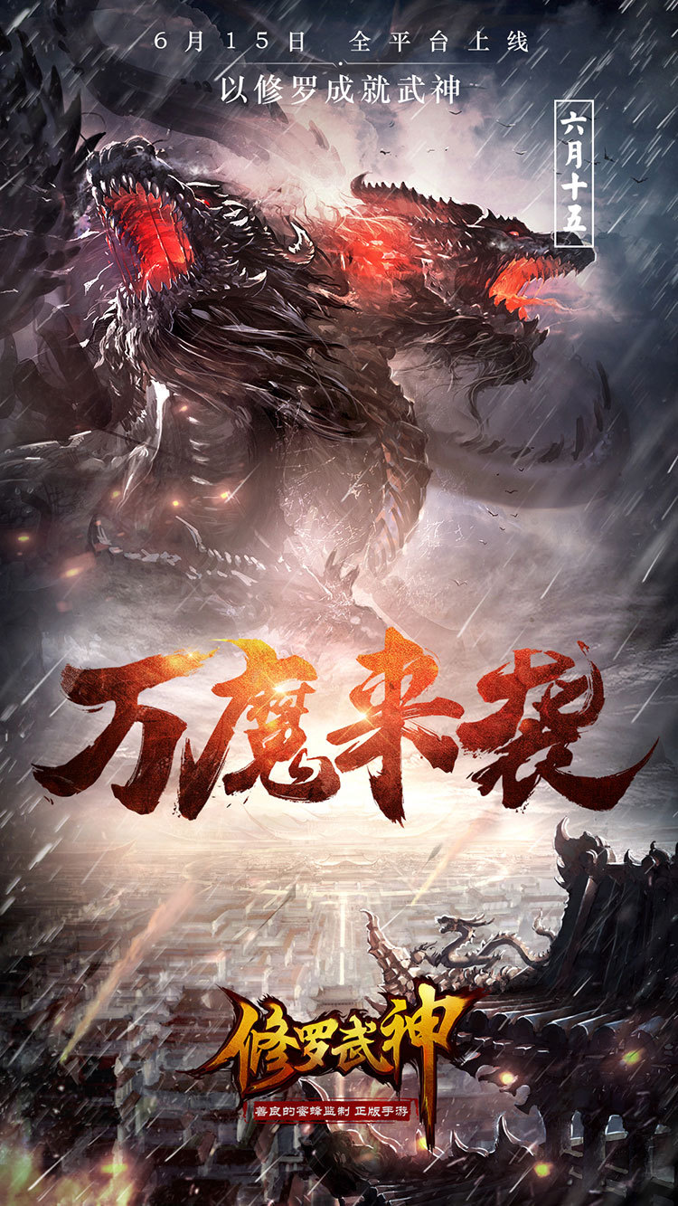 万千陨石坠落,虚空之中数只凶悍妖兽正从浩瀚天外扑向大地,预示着一场仙魔大战一触即发。此张游戏剧情海报把东方玄幻氛围渲染的恰到好处。6月15日魔界大军汹涌来袭,勇士们快拿起手中的武器保卫九州大陆吧!